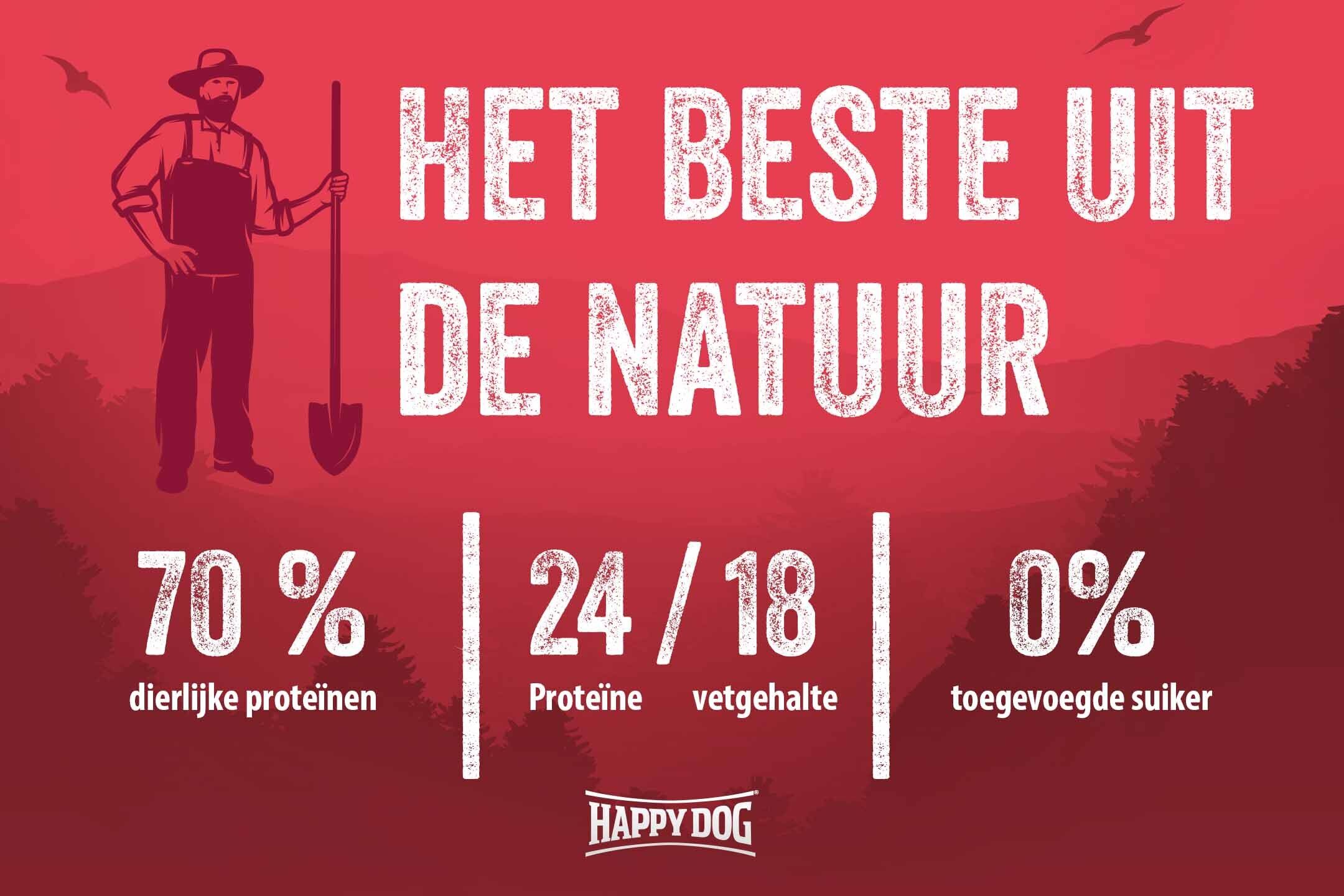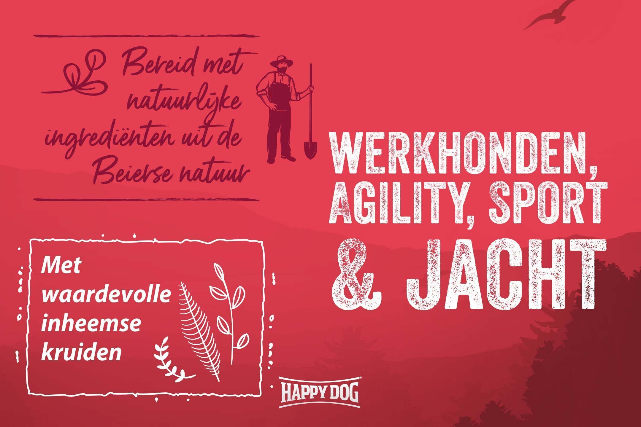 Evenwichtige natuurlijke voeding met regionale ingrediënten voor actieve honden