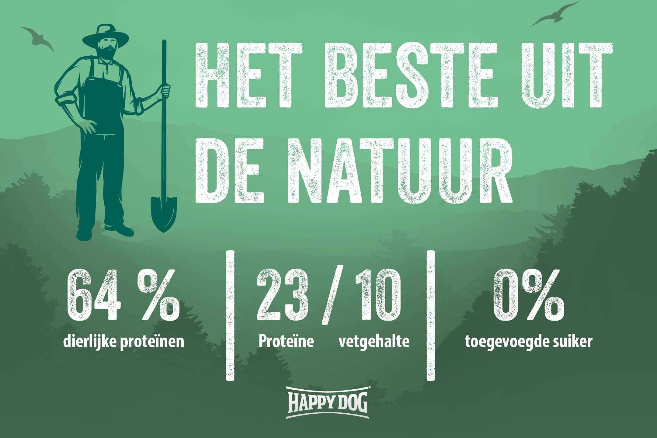 Verminder bij het geven van snacks of andere extra producten de hoeveelheid voeding. Vanwege individuele stofwisselingsverschillen tussen honden kan de aangegeven hoeveelheid van de normale behoefte bij neiging tot overgewicht met 15 % worden verkleind.