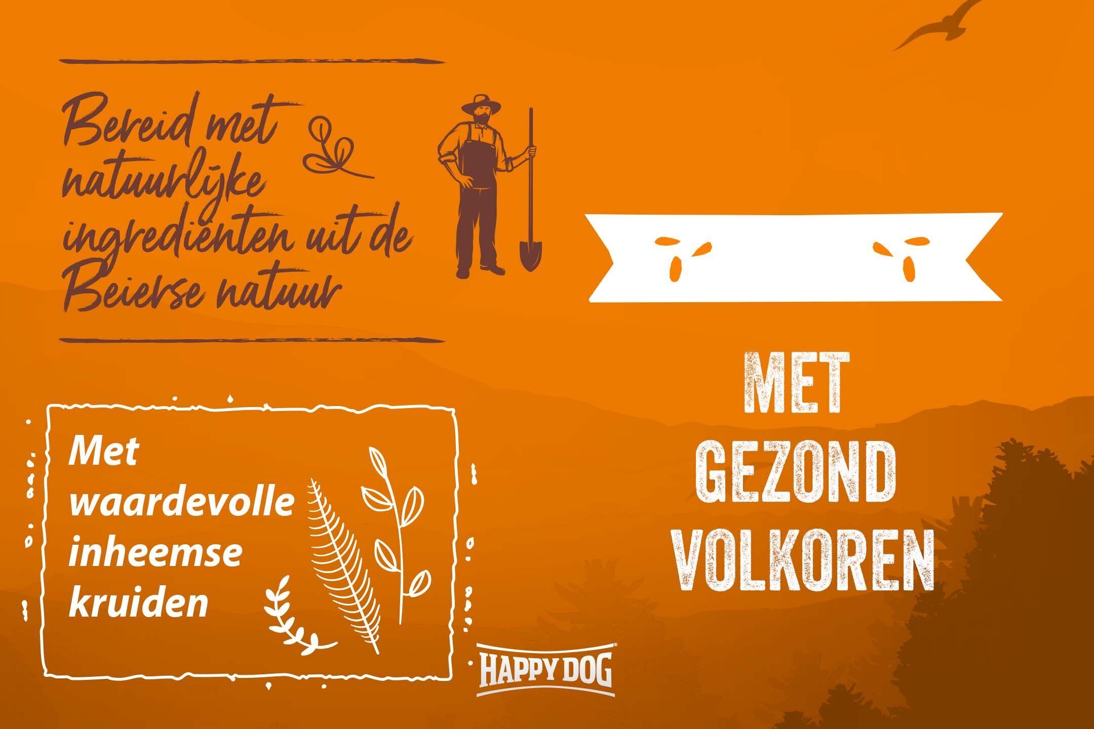 Uw hond zal verzot zijn op deze evenwichtige en natuurlijke totaalvoeding met de beste ingrediënten uit de Beierse landbouw. De krokante brokken bevatten hoogwaardige ingrediënten zoals lekkere eend, zeer licht verteerbare rijst en gezond volkoren graan uit de streek. Eend levert uw hond hoogwaardige dierlijke proteïne en geeft hem de kracht die hij nodig heeft om te spelen en te ravotten. Volkoren producten zijn rijk aan belangrijke voedingsvezels. Ze ondersteunen de werking van de darmen, geven een verzadigd gevoel, stimuleren de vertering en helpen de darmen gezond te houden. Bovendien bevatten ze vitamine B, mineralen zoals magnesium, ijzer, seleen en zink en zitten ze boordevol complexe koolhydraten. De lekkere, licht verteerbare receptuur bevat bovendien waardevolle inheemse kruiden die uw viervoetige vriend op natuurlijke wijze tal van waardevolle voedingsstoffen leveren.