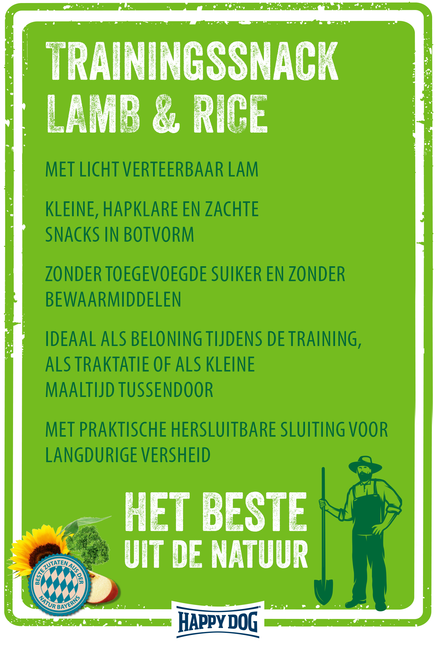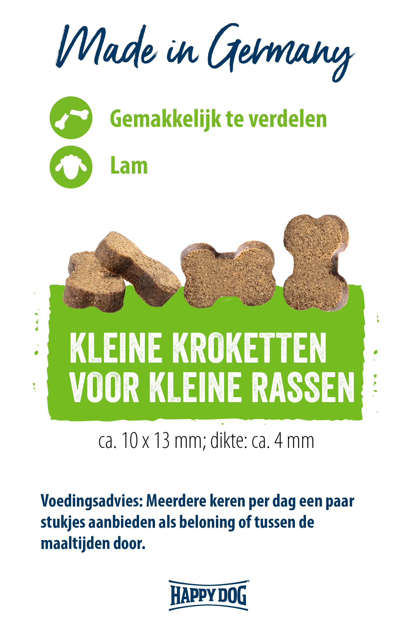Als je kleine hond een gevoelige maag heeft, let dan zeker goed op wat hij te eten krijgt en wat niet. Onze Happy Dog NaturCroq Mini Lamm & Reis trainingssnacks zijn optimaal afgestemd op het licht verteerbare droogvoer Happy Dog NaturCroq Mini Lamm & Reis. Hiermee kun je je kleine schat onbezorgd belonen, zonder dat je zijn spijsverteringsstelsel extra belast.