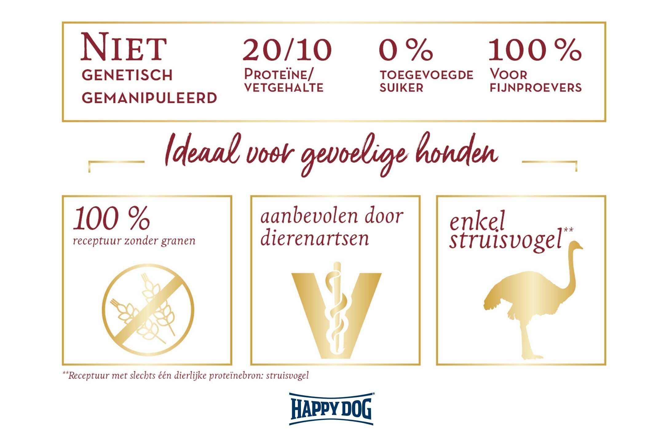 Totaalvoeding zonder granen met struisvogel voor gevoelige fijnproevers