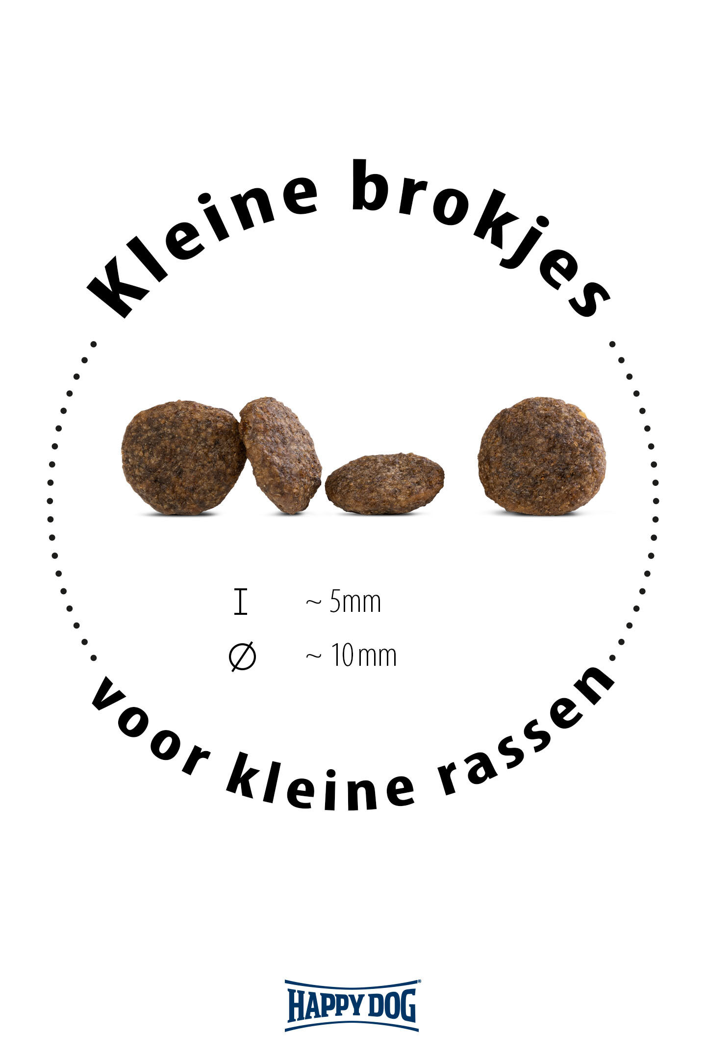 De kleine brokjes zijn optimaal afgestemd op het gebit van kleine hondenrassen tot 10 kg.