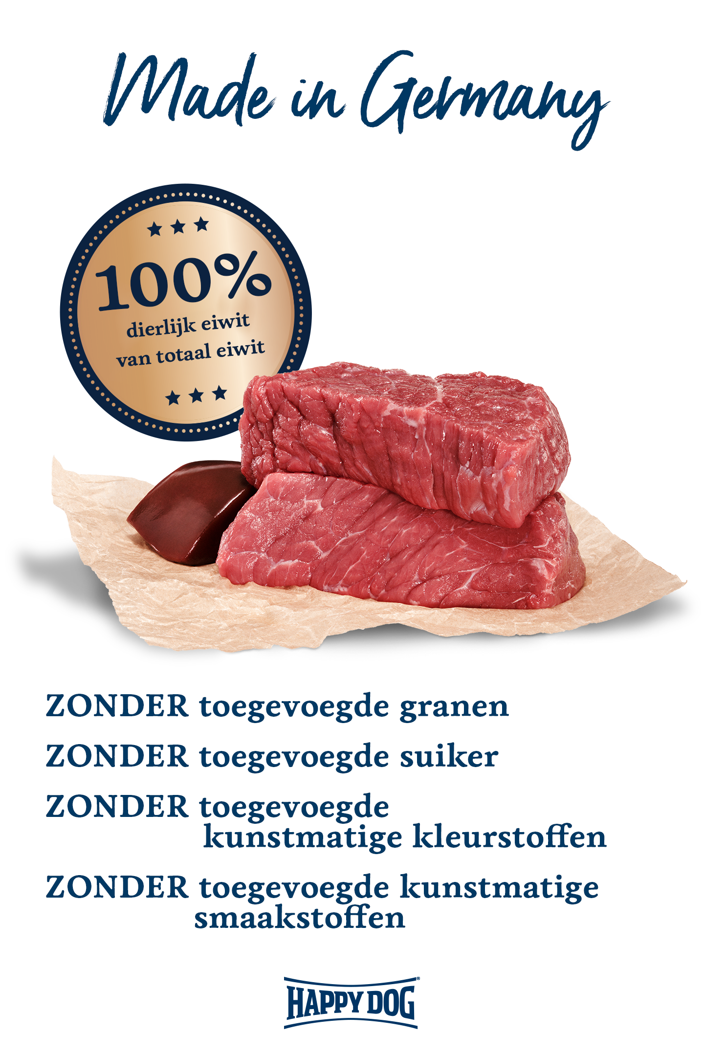 De pure vleesvoeding is perfect geschikt als totaalvoeding of voor zelf bereide voeding en kan perfect met de Happy Dog Flocken Mixer worden gecombineerd. De Flocken Mixer zit boordevol belangrijke voedingsvezels uit groenten om de vertering te ondersteunen en koolhydraten als bron van energie.