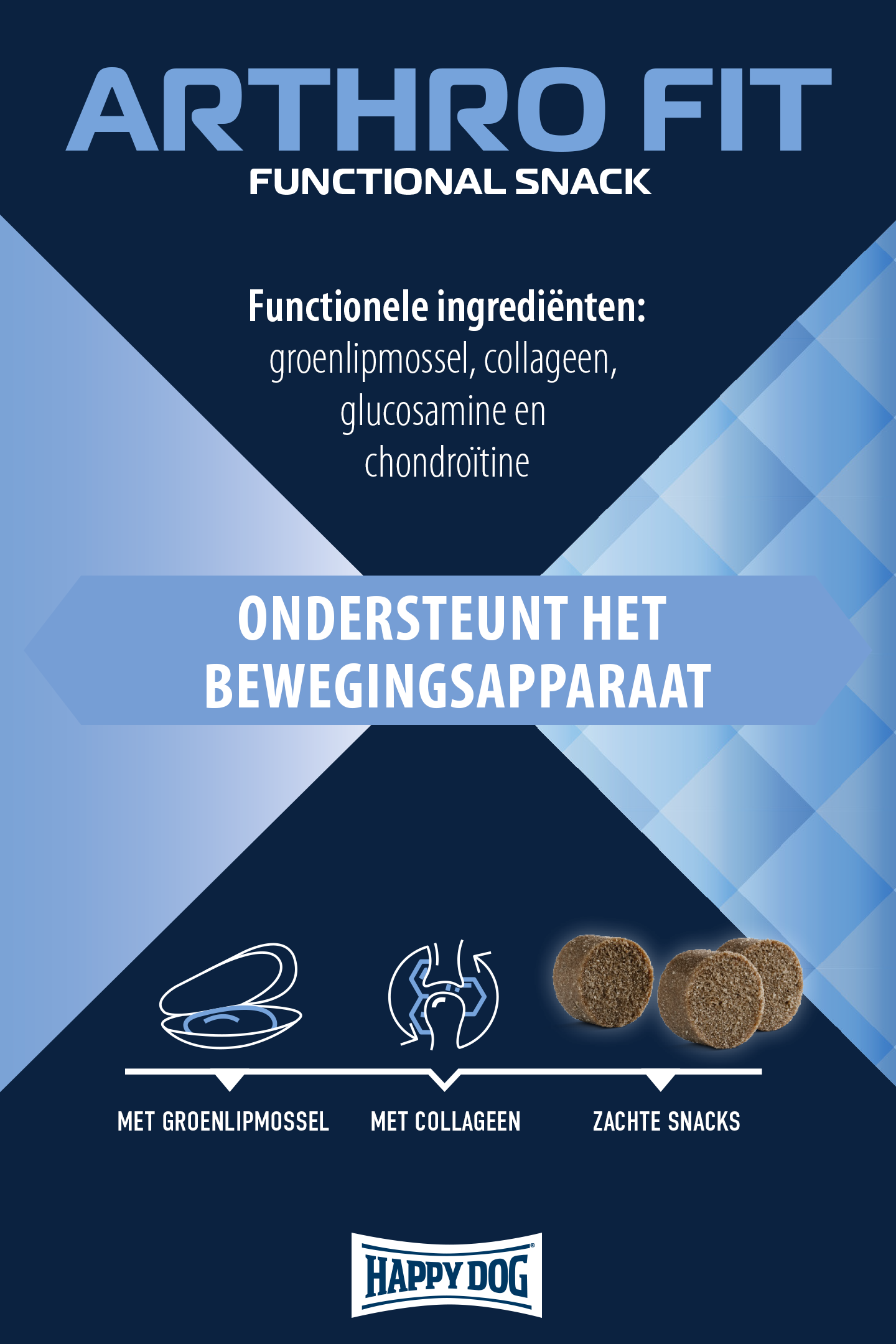 De gewrichten van onze viervoetige vrienden worden dagelijks belast, of het nu tijdens het spelen, het ravotten of het trainen is. Om de natuurlijke werking van de gewrichten te ondersteunen, werd Happy Dog Care snack Arthro Fit ontwikkeld. De hondensnacks zijn niet alleen verrukkelijk lekker, maar ondersteunen door de waardevolle groenlipmossel en het collageenhydrolisaat ook het bewegingsapparaat. De zachte snacks van deze functionele snacks zijn gemakkelijk in gebruik en perfect te doseren. De hondensnacks worden in Duitsland geproduceerd, uiteraard zonder toegevoegde suikers en zonder kunstmatige geur- en kleurstoffen of conserveringsmiddelen.